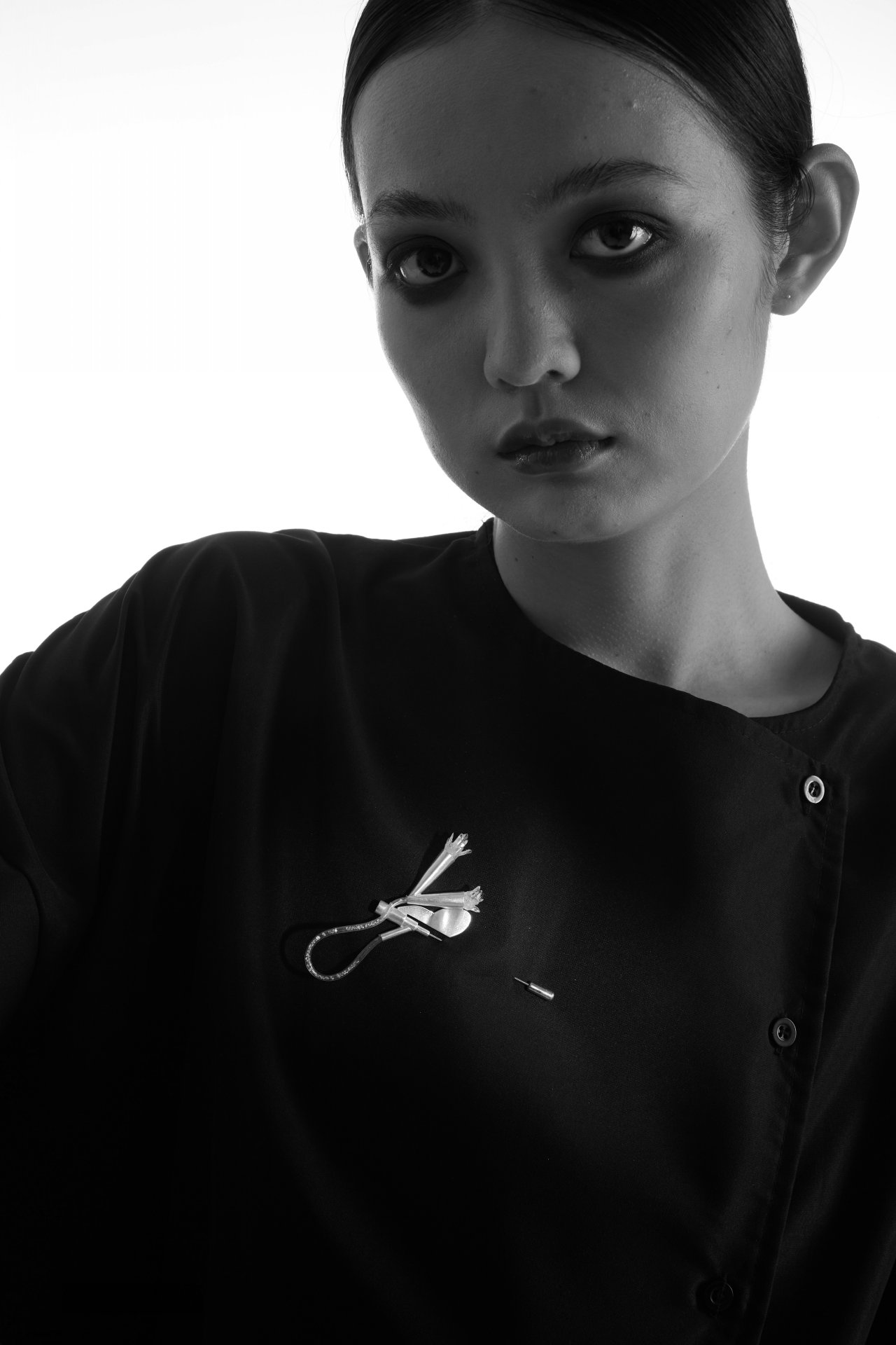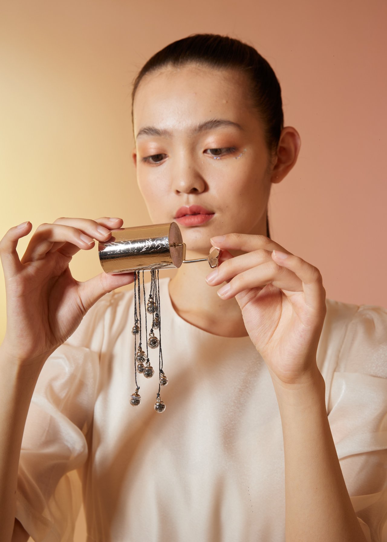 《閃爍的水滴》系列作品的靈感來(lái)自于我手臂上的一個(gè)疤痕,這個(gè)疤痕是在我生病期間由留置針留下的。在我住院治療的一年里,這根留置針一直保留在我的手臂上。隨著時(shí)間的流逝,我逐漸覺(jué)得它就像是一件飾品被佩戴在我的手臂上。因此,我開(kāi)始思考將醫(yī)療器械轉(zhuǎn)化為首飾的可能性。在這個(gè)項(xiàng)目中,我的三件作品分別來(lái)源于與自身經(jīng)歷相關(guān)的三件醫(yī)療器械:輸液器、留置針和醫(yī)用貼紙。并在作品中加入了珍珠和水晶等材料來(lái)表現(xiàn)輸入身體的藥品和我的血液,使作品在還原使用過(guò)程的同時(shí)也增強(qiáng)了其作為首飾的裝飾性。