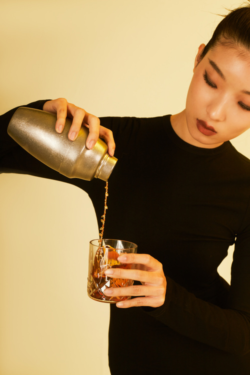 我的愛(ài)好之一是品嘗與調(diào)制雞尾酒。在喝酒和調(diào)酒的過(guò)程中,酒液往往處于不穩(wěn)定的狀態(tài),欣賞透明的酒液流動(dòng)的場(chǎng)景,是調(diào)酒帶給我除了美味之外的另一種享受。作為一名首飾設(shè)計(jì)師,我將酒液飛濺的瞬間定格,并將其設(shè)計(jì)成首飾架和配套首飾。