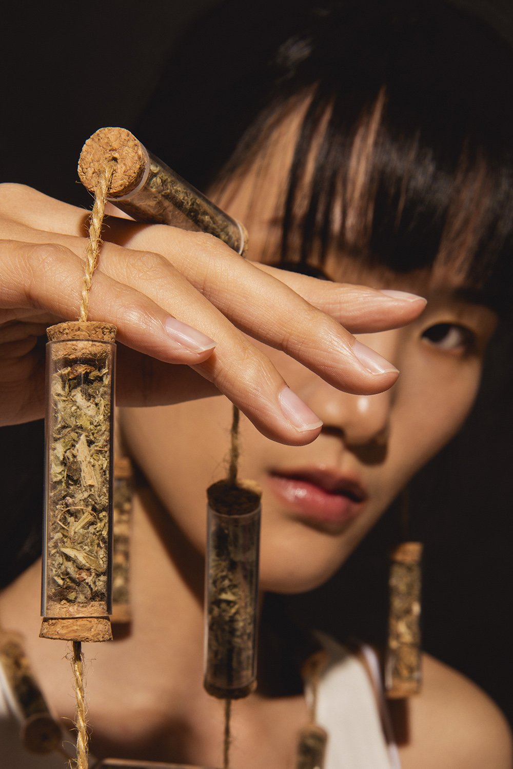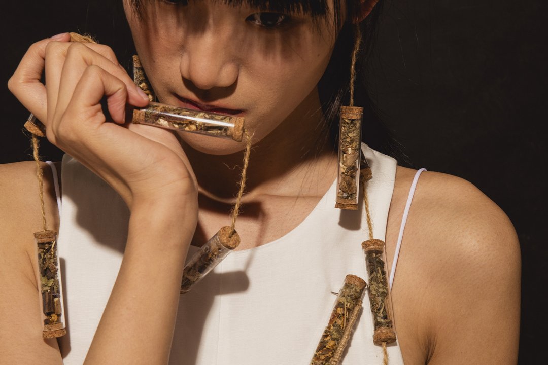 在我的作品《Practical》中,我用亞克力和擁有驅蚊、提神功效的中藥配方做結合,透明的亞克力可以很好突顯出我所運用到的中藥。這是一系列功能性首飾,作品被佩戴后可以很好的聞到首飾內中藥的味道,發(fā)揮作用。