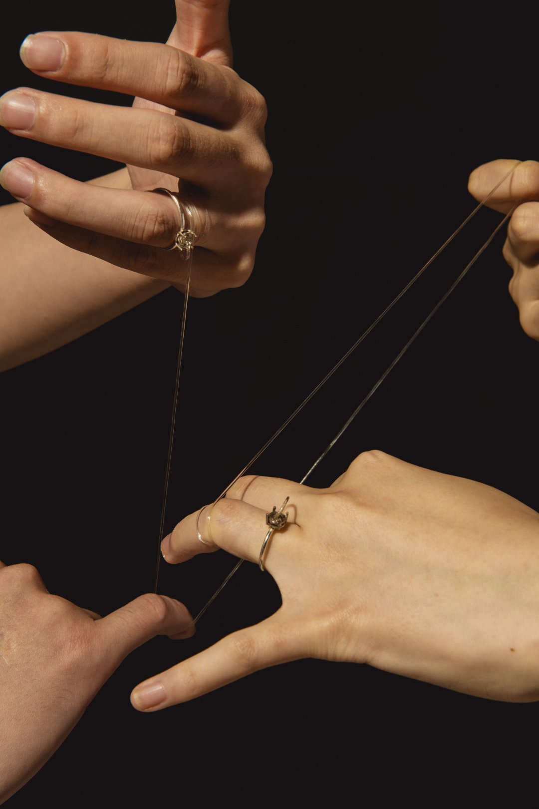 In the project Wrapping, I showed my perfectionist behavior through the video. In the process of creating it, I dissected the source of the behaviour and eventually realised that the constant pursuit of covering up flaws was just a false 'perfection'. The project Necklace is a combination of jewellery and games, using metal necklaces as clues and different new materials to interact with the audience in a game that explores the secrets of jewellery. Each piece of jewellery in Interpersonal Rings is inspired by a specific event and uses the language of jewellery to visualise the intangible impact it has on human relationships.