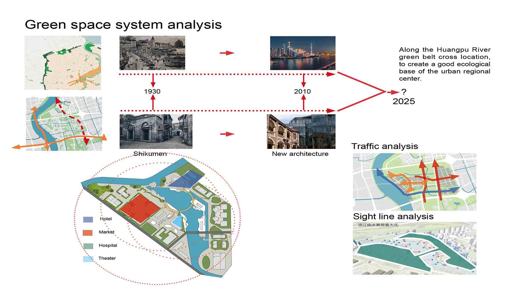 My work not only discusses the needs of people and the factors of the surrounding environment, but also considers what kind of building can make people more safe and better relaxed in a tense environment. So I used indoor greening landscape, so that vegetation can better release oxygen, and through a large number of glass transparent, into the sun. Also can in the crowded environment, very convenient to come outside to breathe fresh air.